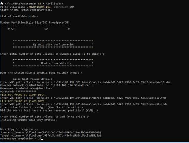 - Browse to X:Utilities and run below command to start the BMR Restore script from Powershell and follow the Script steps.