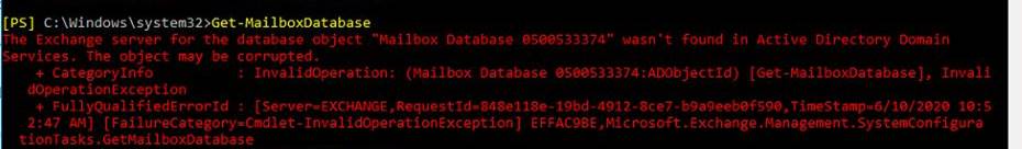Exchange Database not getting listed in GUI
