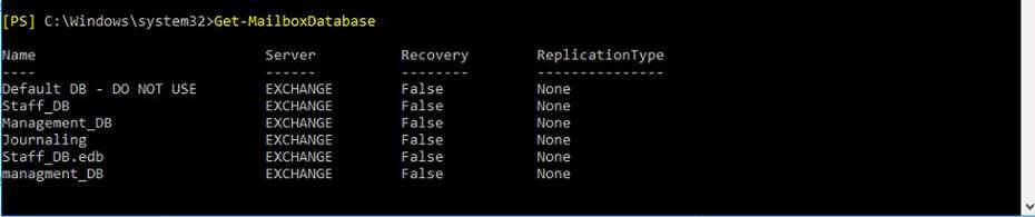 Exchange Database not getting listed in GUI