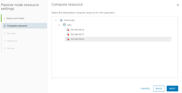 Click Edit and Specify the deployment host, Storage and network for Passive Network.