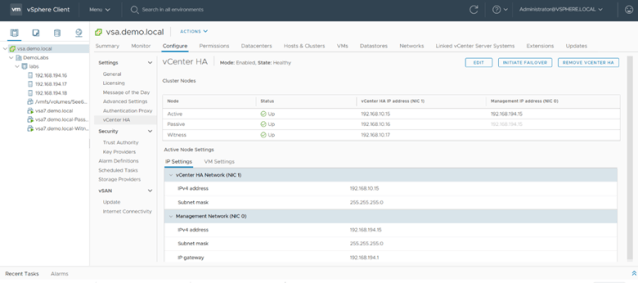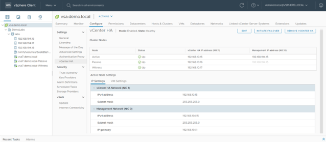 VCenter HA has been configured. You can see two new VM Named with passive & Witness has been created.