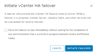 Click Initiate Failover, to confirm the failover. Select force option if you want to initate the failover immediately.