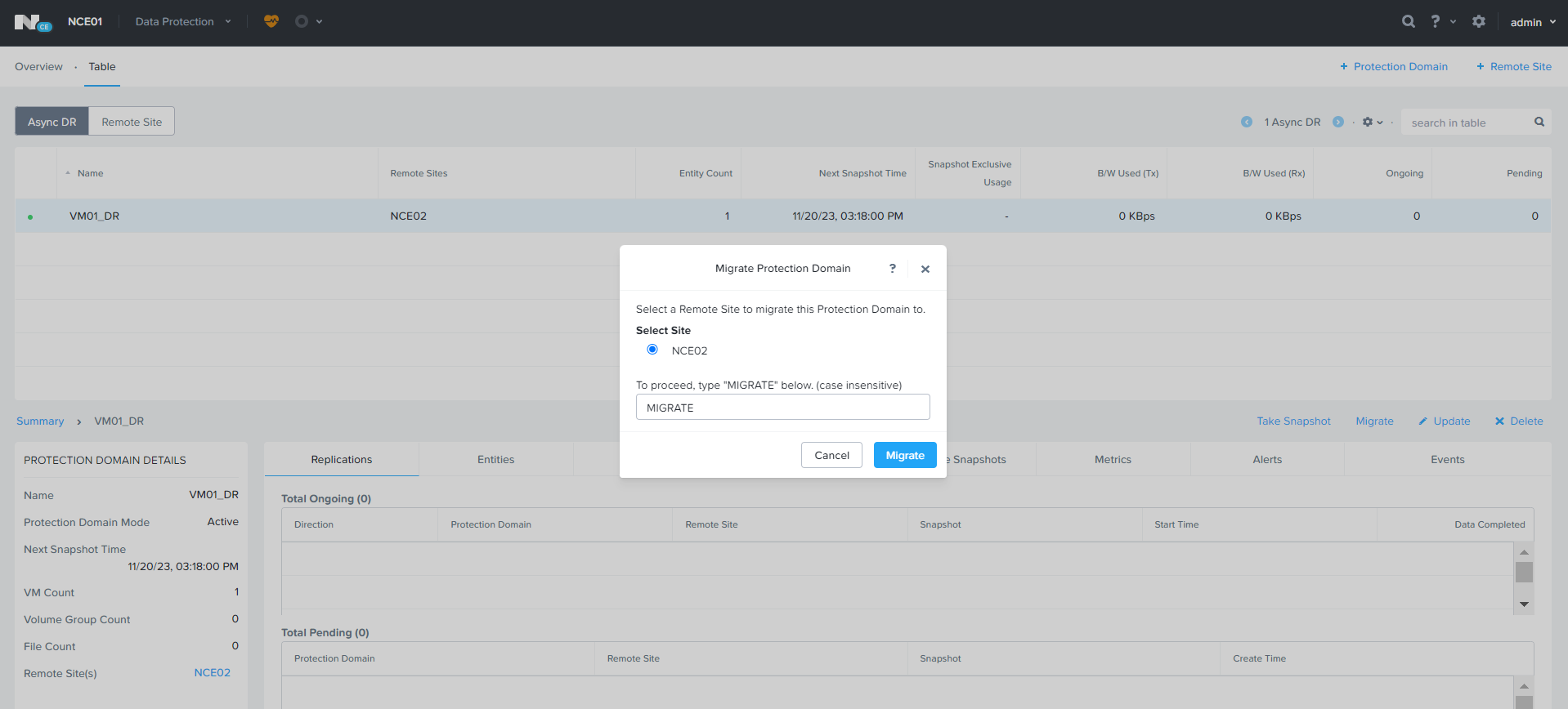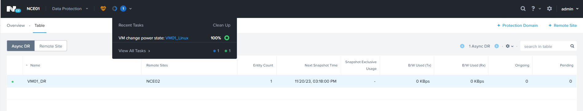 Migration Task will be created, it will take 1-2 minutes to complete. During the process VM will be shutdown from active site and deregistered from active site and registered to the Remote Site.