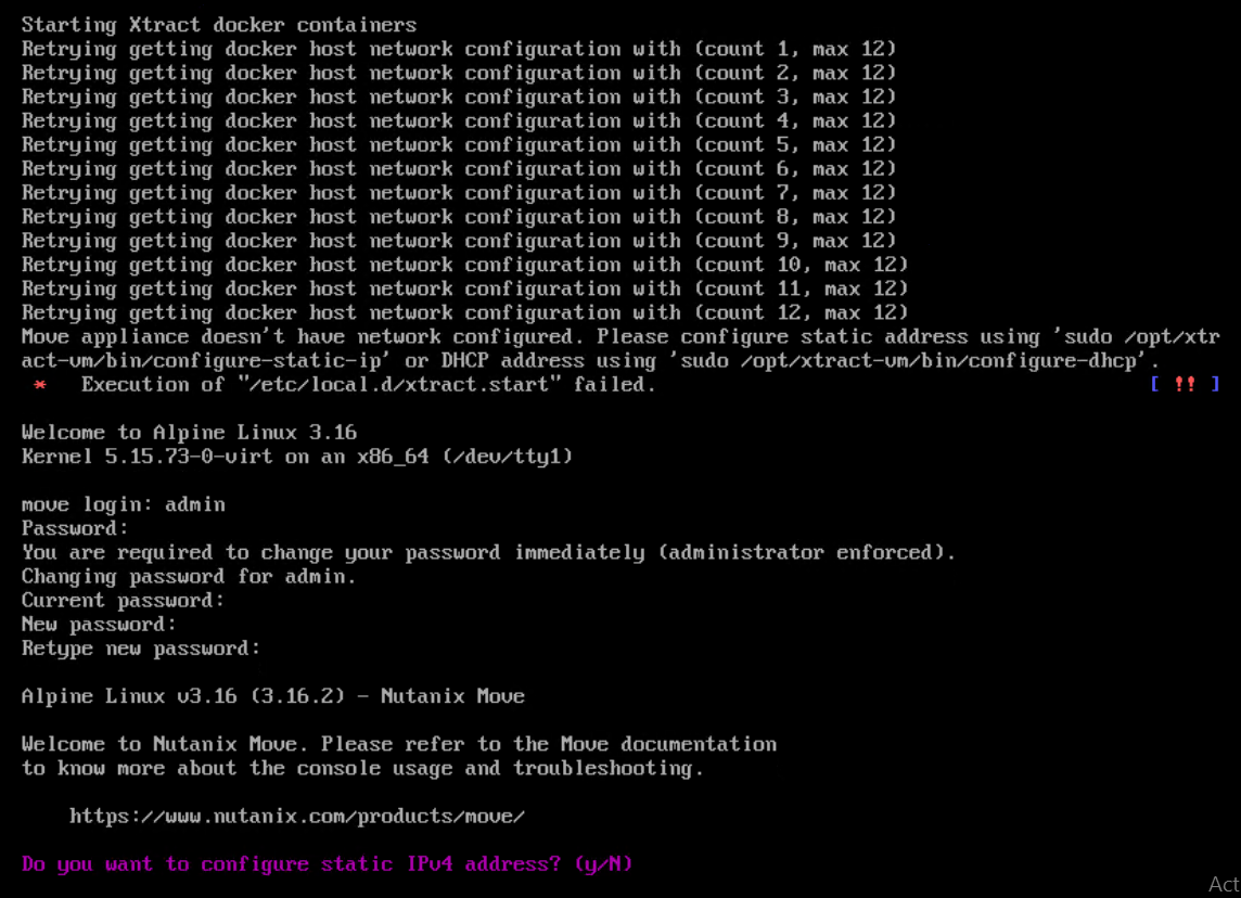 Login to Move VM with default credentials
