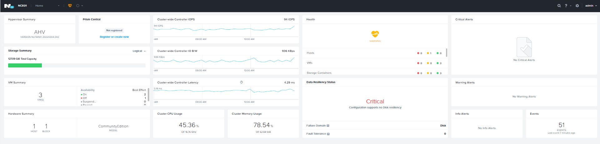 Nutanix Prism Central provides an option to monitor and manage multiple clusters through a single web console. Centralized management tool runs as a separate instance it can be a single VM or a set of VMs.