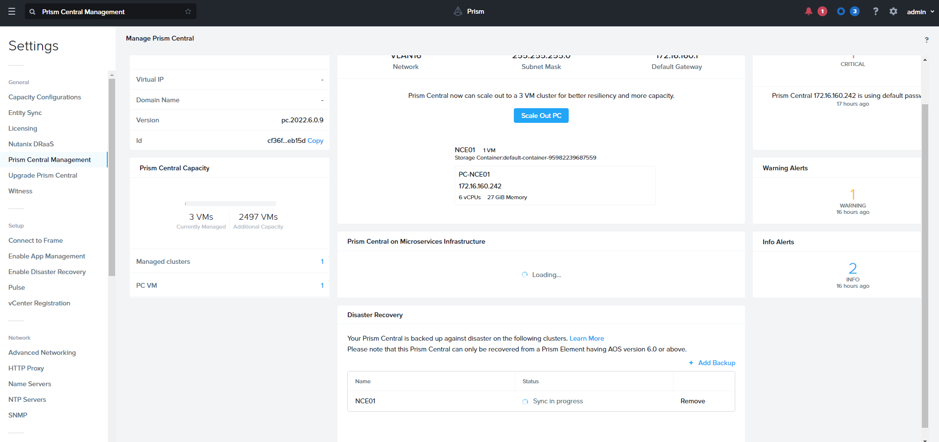 To Prism Central Disaster Recovery. Browse to Setting — > Prism Central Management