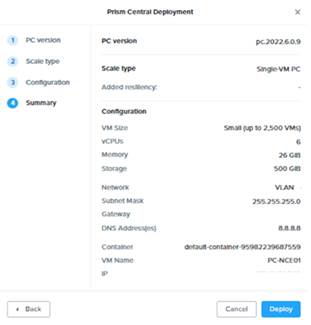 Review the Deployment summary & Click Deploy to start the PC Deployment.